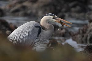 The great fisherman, the Great Blue Heron with fish in mouth. Taken in the central coast of California, March 2025